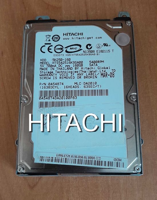 dysk Hitachi Hitachi Travelstar 5K250 160 GB, 8 MB, SATA II ) 2,5"