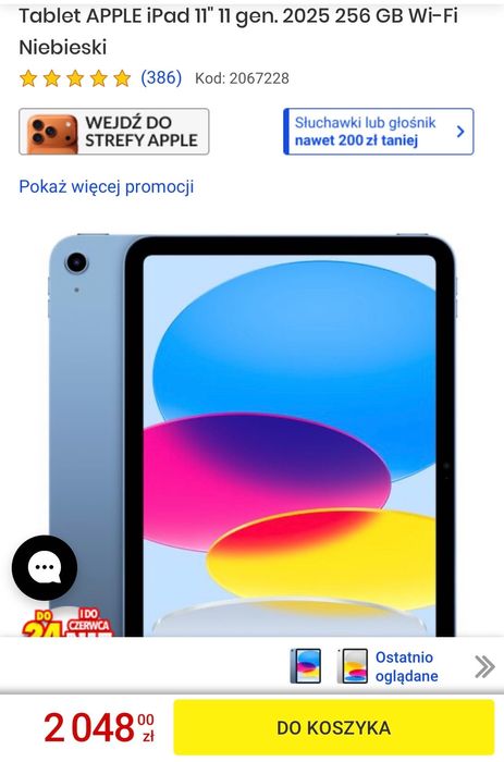 Tablet APPLE iPad 11" 11 gen. 2025, 256 GB , Wi-Fi Niebieski