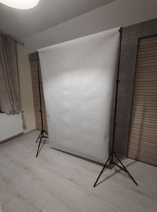 Zestaw do robienia zdjęć, tło białe do zdjęć, 2 statywy, drążek