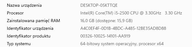 Komputer stacjonarny z i5-8400, GTX 1050, windows 11