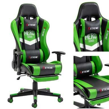 Fotel EXTREME HERO Green Gamingowy dla Graczy z podnóżkiem