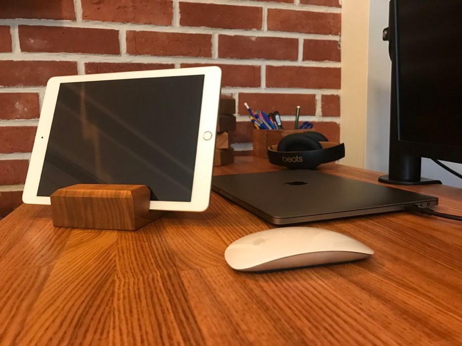 Stylowa, stojak, drewniana podstawka pod telefon, tablet, iPad