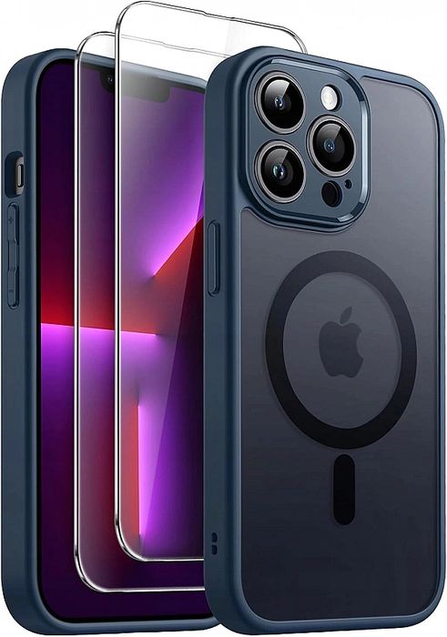 Etui Magnetyczne iPhone 13/6,1 Cala x2 Szkło Hartowane JETech Ciemnozi