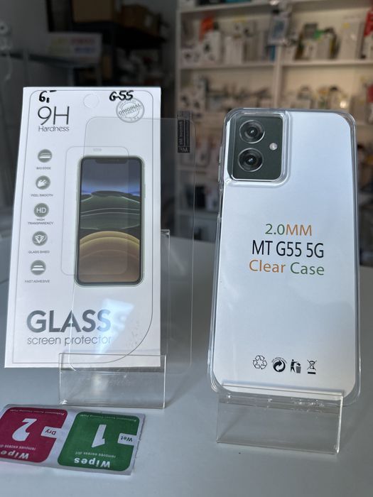 Szkło hartowane i etui przeźroczyste 2mm do MOTOROLA G55