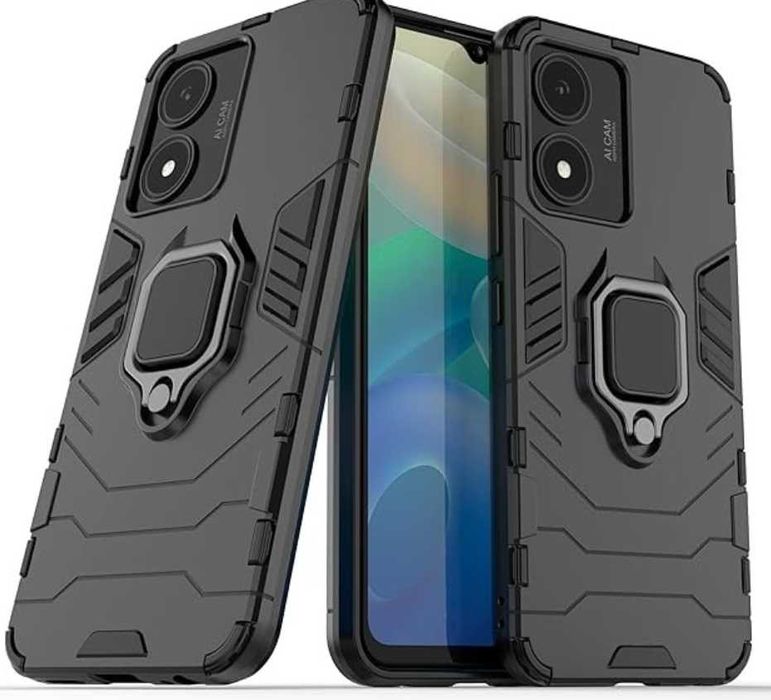 FTRONGRT Etui pancerne z uchwytem do vivo Y02s – czarne, odporne
