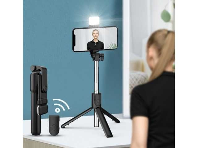 SELFIE STICK  STATYW Uchwyt na Telefon Kijek TRIPOD Lampa LED Pilot BT
