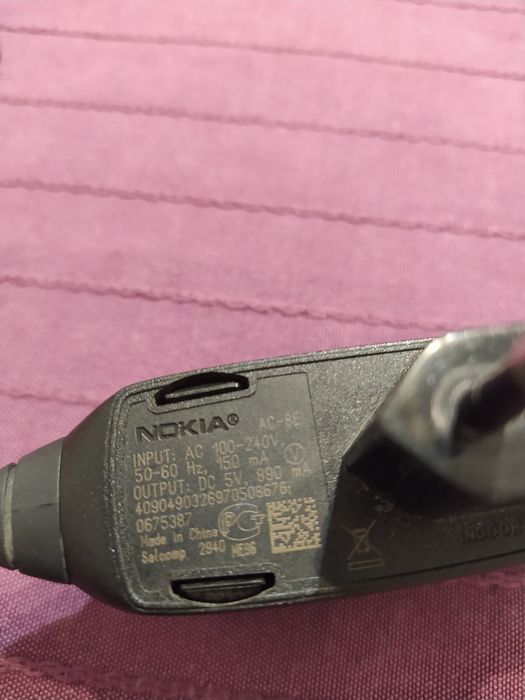 Oryginalna ładowarka Nokia AC-8E , 5V 890mA , cienki wtyk- sprawna.