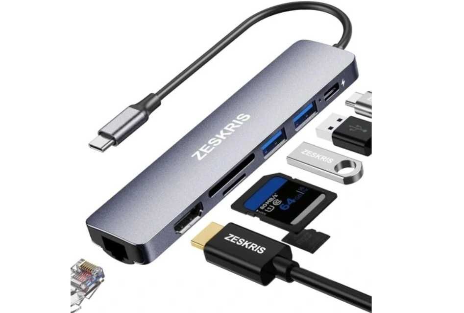 Hub USB C, ZESKRIS adapter USB C do USB 7 w 1 z Ethernetem, 100 W