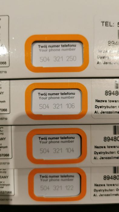 Pakiety startowe nr tel Orange 4 numery tel