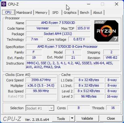 Procesor AMD Ryzen 7 5700X3D + 32GB DDR4 3600MHz CL18 + B450M MORTAR