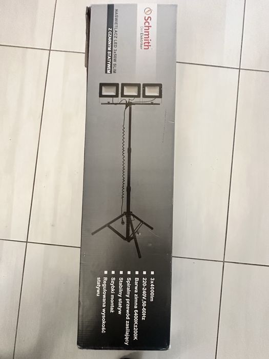 Naświetlacz LED 3x50 W SLIM z czarnym statywem