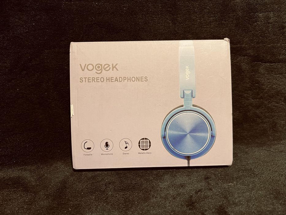Słuchawki vogek niebieskie z mikrofonem, stereo nowe, przewodowe