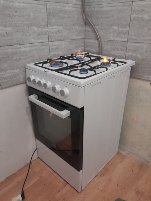 Kuchenka gazowa Beko z elektrycznym piekarnikiem.
