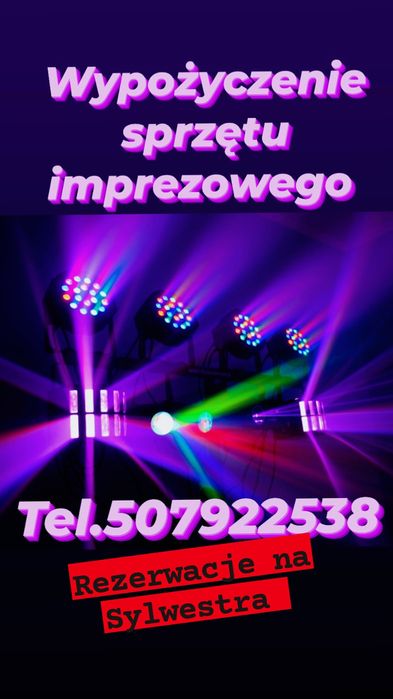 Laser stroboskop reflektory kolorofon wytwornica dymu