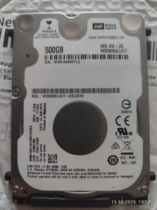 Dysk HDD 500 GB do laptopa lub dekodera.