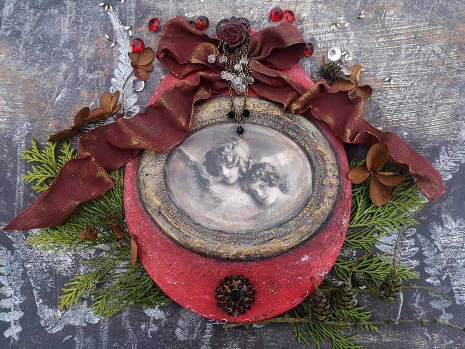 Medalion Obrazek Decoupage Winietka Anioly Aniołki Vintage