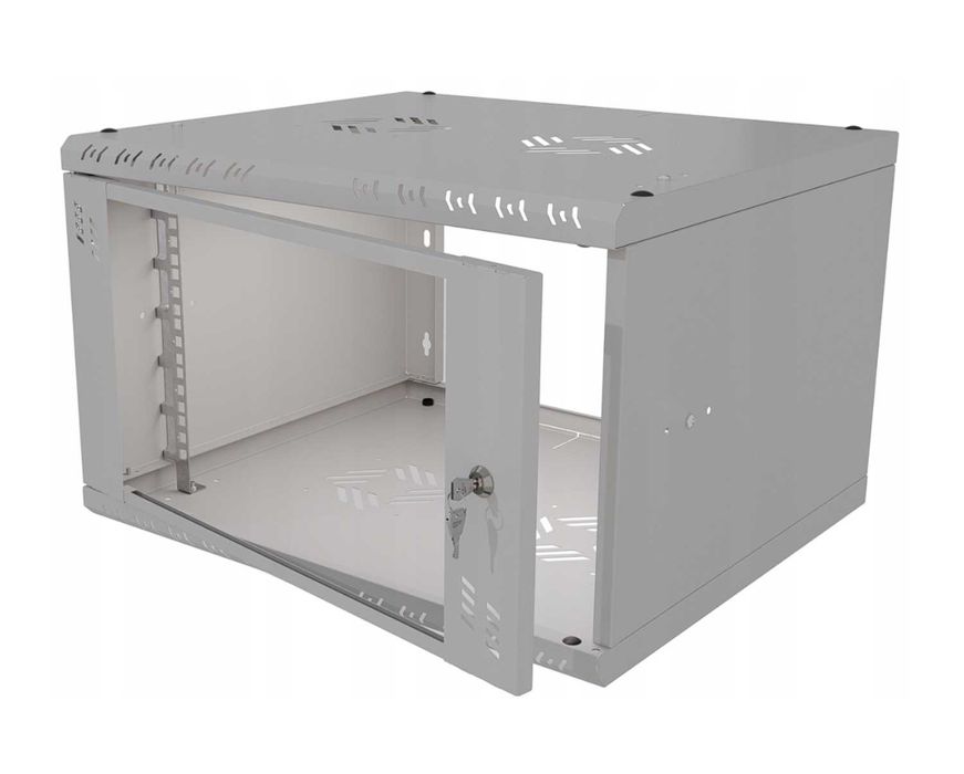 Szafa Serwerowa Wisząca RACK 19" 6U 450mm Szklane Drzwi Szara Stalflex