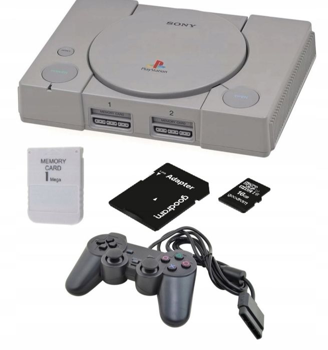 Sony PlayStation 1 + PAD + Memory Card + 64GB + okablowanie + ODE