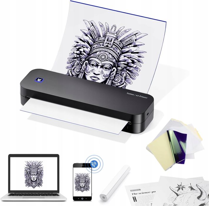 BIOMASER Drukarka do tatuażu Bluetooth, 20 arkuszy A4