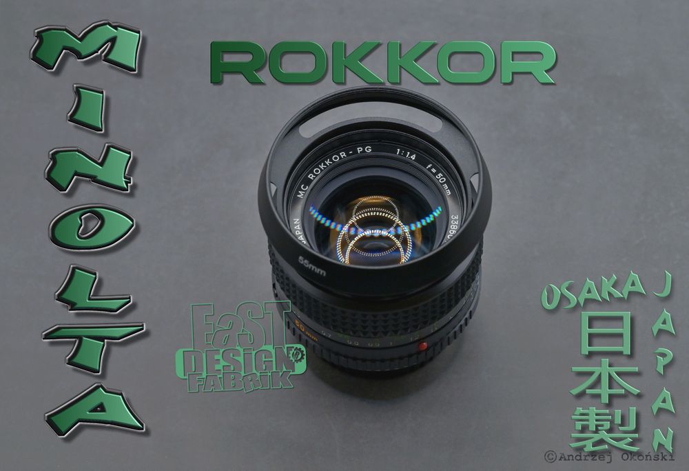 Vintage-Retro obiektyw Minolta MC ROKKOR-PG 1.4/50mm + metalowa osłona