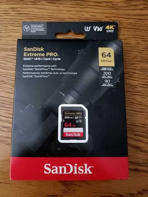 Sandisk 64GB SDXC Extreme PRO 200MB/s A2 C10 V30 UHS-I U3