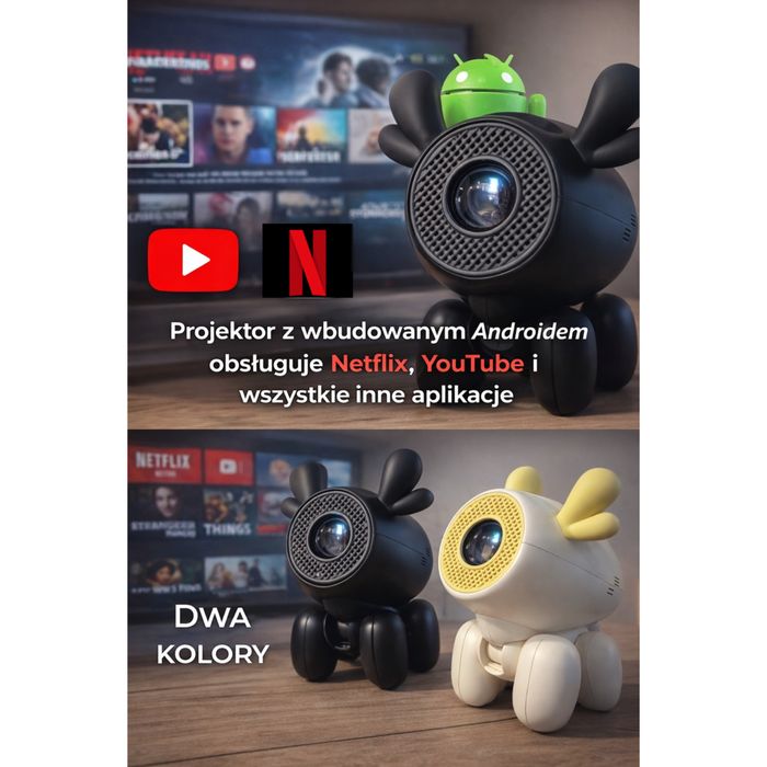 ANDROID Przenośny projektor obrotowy rzutnik głośnik SMART TV wifi