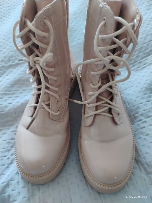 Beżowe lakierki botki