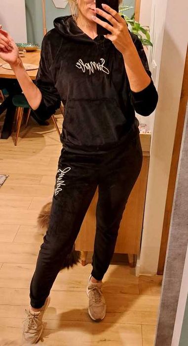 Welurowy dres czarny bluza z kapturem r. S/M