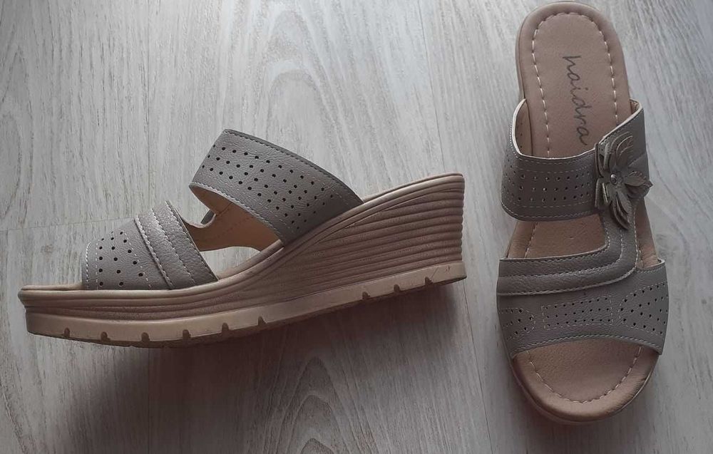 klapki damskie 39 używane wysokość 5cm kryte w Meble