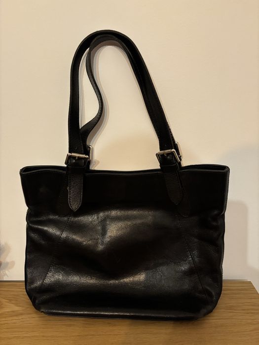 torebki skorzane czarne na ramie w Moda