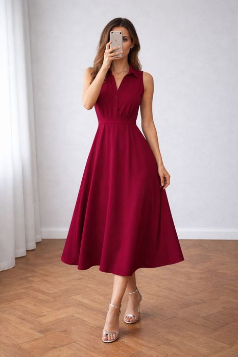 długa czerwona sukienka w Moda