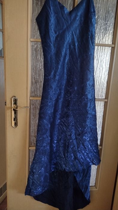szafirowa satynowa sukienka w Ubrania damskie
