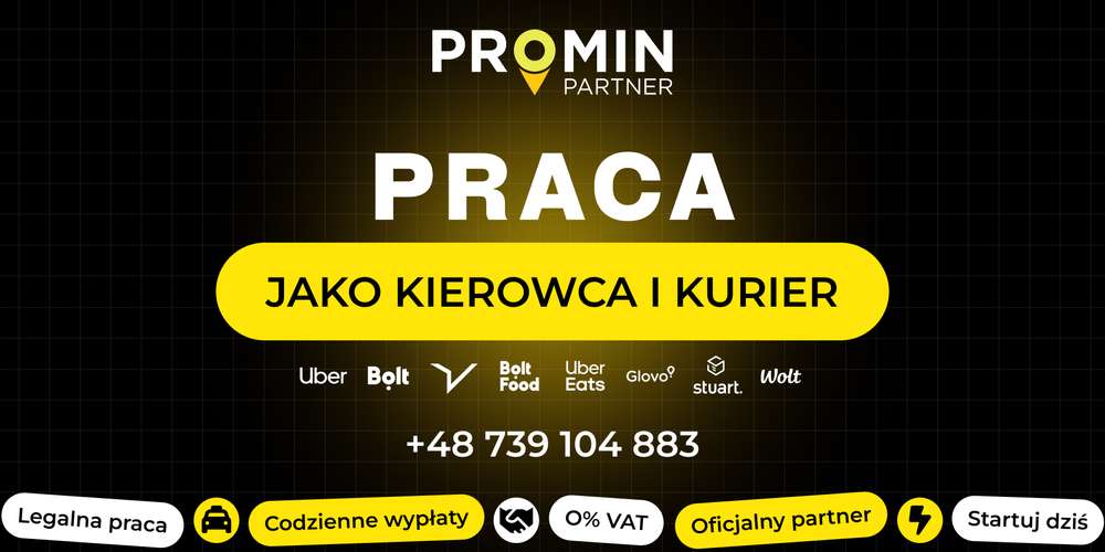 Мы динамичная компания Promin Partner, специализирующаяся на сотрудничестве с крупнейшими транспортными и доставочными платформами, такими как Uber, Bolt, FreeNow, Glovo, Wolt и другие.