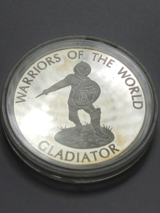 Posrebrzana moneta w kapslu Kongo 10 franków 2010r. Wojownicy/Gladiator - Rzadka