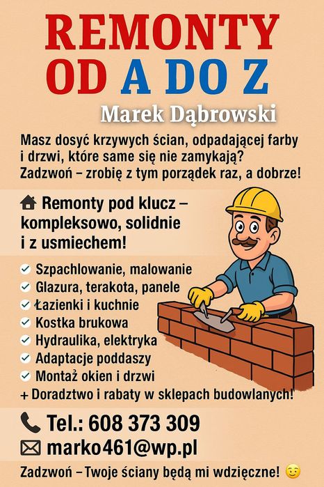 Znajdź profesjonalne usługi remontowo budowlane na OLX. Od drobnych napraw po duże projekty budowlane - szeroki wybór ogłoszeń. Sprawdź teraz!
