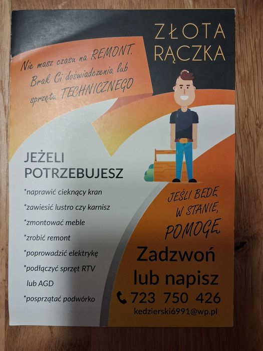 Znajdź złotą rączkę na OLX. Montaż, naprawy, prace drobne - przeglądaj ogłoszenia w okolicy miejscowości Kłodawa i znajdź najlepszego wykonawcę!