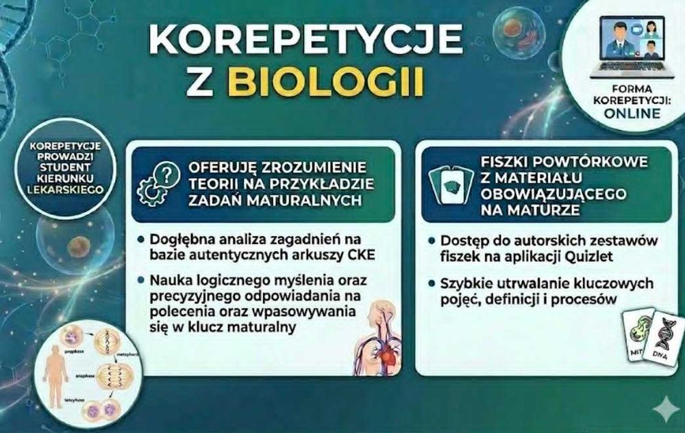 Znajdź korepetycje z biologii na OLX - Próba! Doświadczeni nauczyciele oferują pomoc w nauce biologii. Sprawdź oferty korepetycji i wybierz najlepsze.