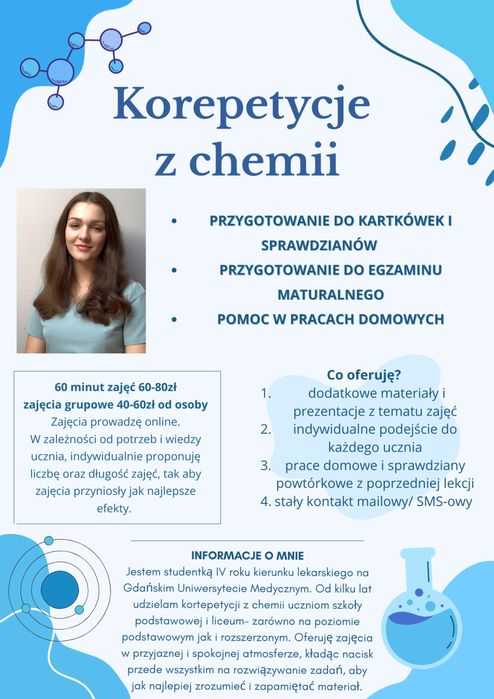 Problemy z chemią? Sprawdź ogłoszenia na OLX i znajdź najlepsze korepetycje z chemii z profesjonalistami! Czapielski Młyn i okolice.
