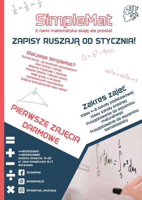Korepetycje z matematyki na OLX - znajdź doświadczonych nauczycieli i popraw swoje wyniki. Skorzystaj z ofert korepetycji w miejscowości Nowy Dwór Mazowiecki!
