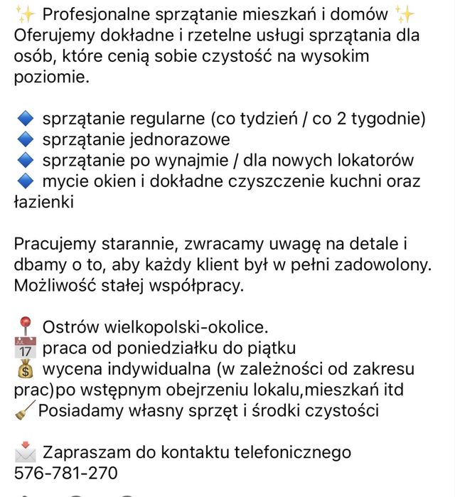 Znajdź kompleksowe usługi sprzątania i czyszczenia w pobliżu miejscowości Chrzanowice na OLX. Czystość i porządek dla Twojego domu lub biura!