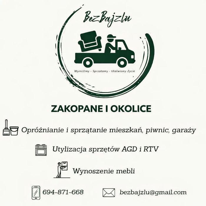 Skorzystaj z usługi opróżniania mieszkań w miejscowości Zakopane i pozbądź się niepotrzebnych rzeczy. Znajdź profesjonalną pomoc na OLX Usługi!