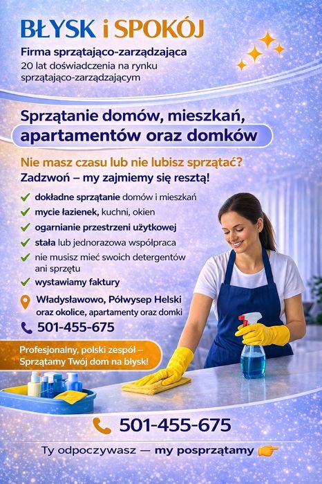 Znajdź kompleksowe usługi sprzątania i czyszczenia w pobliżu miejscowości Puck na OLX. Czystość i porządek dla Twojego domu lub biura!