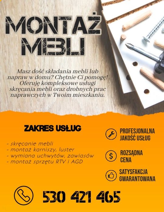 Znajdź profesjonalne usługi montażu mebli na OLX. Szybka i efektywna instalacja wszystkich typów mebli - Drogowle i okolice. Zarezerwuj usługę!