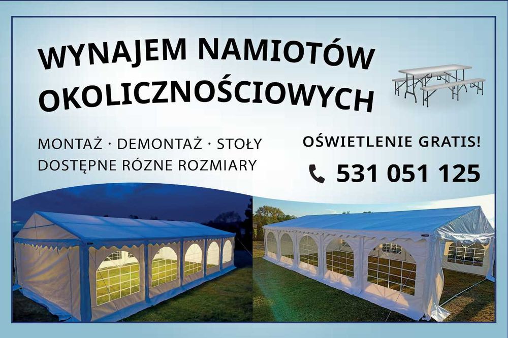 Wypożyczalnia mebli eventowych na każdą okazję – wynajem namiotów, stołów, krzeseł i akcesoriów. Zorganizuj udany event z OLX! Odolanów i okolice.